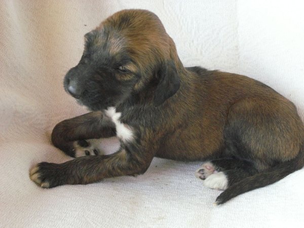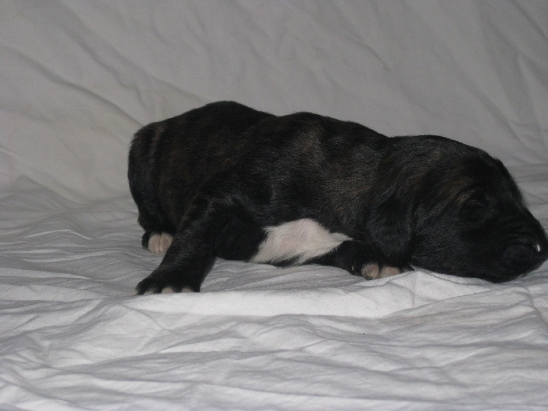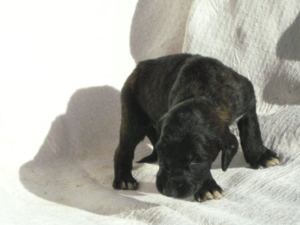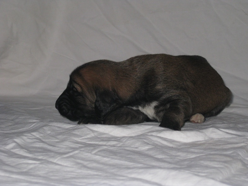 il reste a ce jour 2 males fauve bringé noir, 1 male et 1 femelle noir et feu et 1 femelle noir sur la portée de zaphira X cashemire(portée de 10) et 1 male sable bringé bleu et 1 male domino bringé sur l'autre portée (portée de 8)dont le papa est cashemire aussi tres jolis chiots et surtout super caractere .